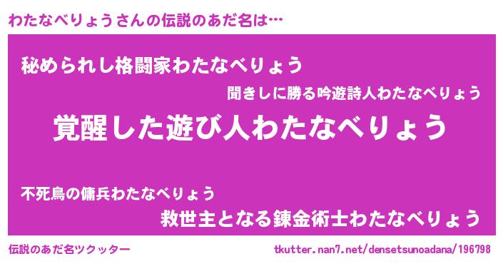 | 男性向けラノベタイトル風あだ名 | 『わたなべりょうの嫁は女の子じゃないと思った?』 |
