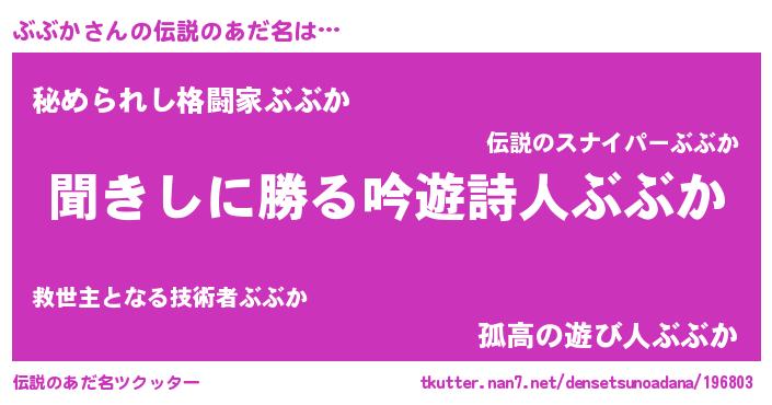 | 女子向けラノベタイトル風あだ名 | 『ぶぶかなんてお断りですっ。』 |
