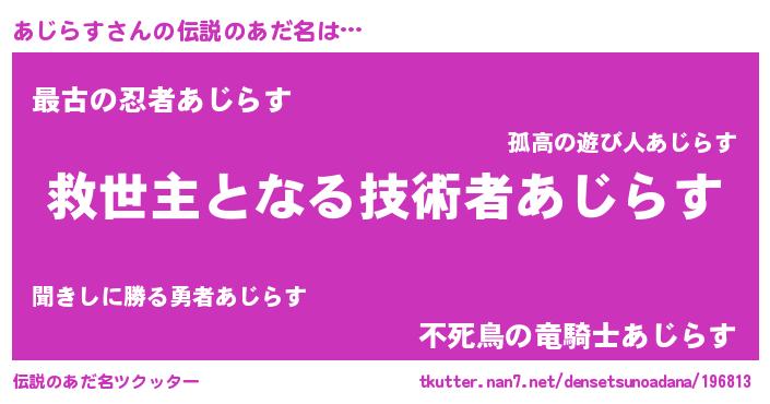 | ヒーロー風カッコイイあだ名 | 『慈愛の使者あじらす』『仮面アジダー』 |