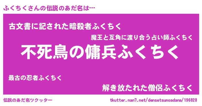 | ヒーロー風カッコイイあだ名 | 『仮面フクダー』『最強戦士フクチク』 |