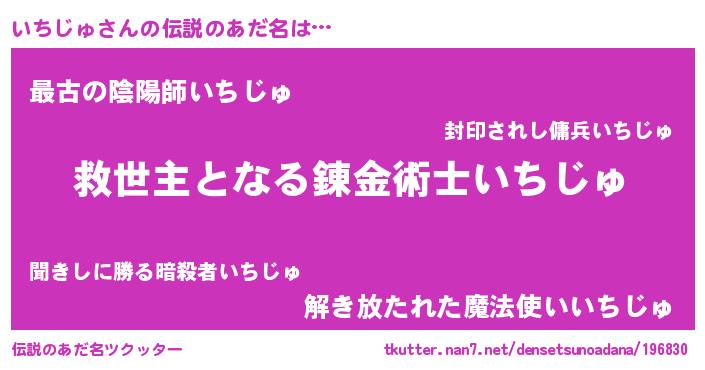 | 男性向けラノベタイトル風あだ名 | 『いちじゅに滅ぼされるだけの簡単なお仕事です』 |