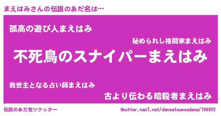 | ヒーロー風カッコイイあだ名 | 『サイバー戦士マエハミ』『仮面マエダー』 |