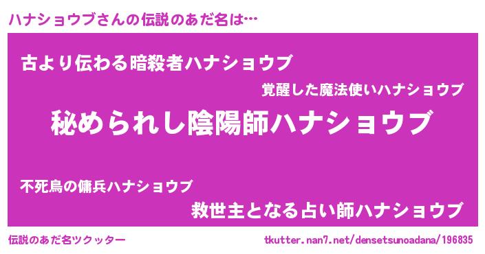 | ヒーロー風カッコイイあだ名 | 『仮面ハナダー』『ネオハナショウブ』 |