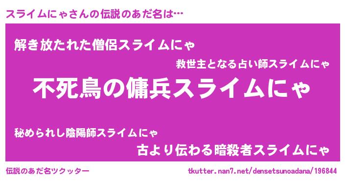 | ヒーロー風カッコイイあだ名 | 『仮面スラダー』『スーパースライムニャ』 |
