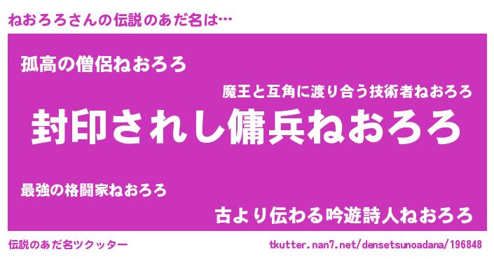| 意味不明あだ名 | 『自称ねおろろ』『ペロリンねおろろ』 |
