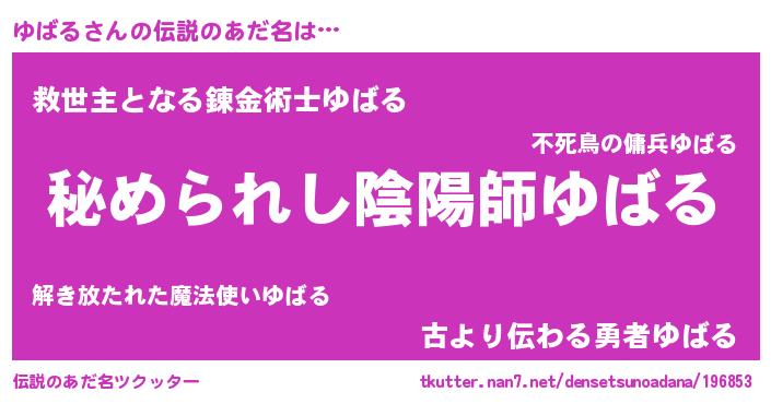 | 女子向けラノベタイトル風あだ名 | 『ゆばるの雑貨屋さん』『闇のゆばる』 |