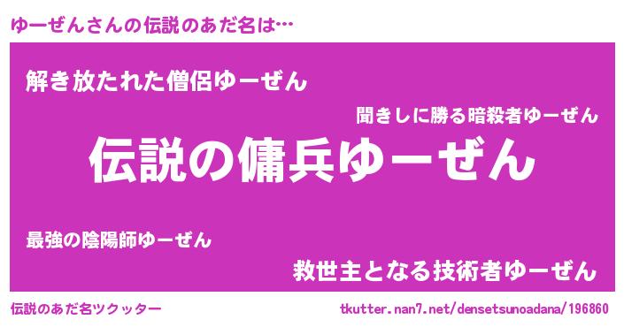 | 女子向けラノベタイトル風あだ名 | 『ゆーぜんなんてお断りですっ。』 |