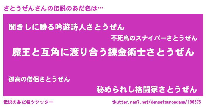 | ポケモン風あだ名 | 『サックウザ』『ゼニサト』 |