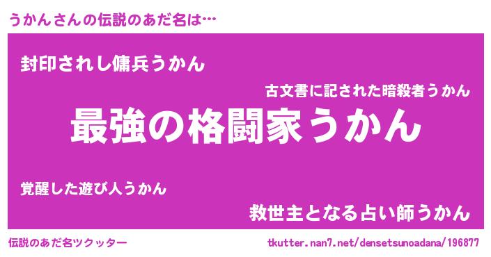 | ヒーロー風カッコイイあだ名 | 『ウルトラうかんマン』『仮面ウカダー』 |