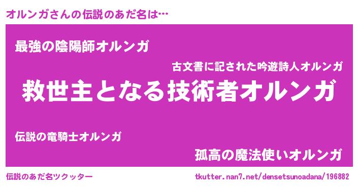 | 意味不明あだ名 | 『住所不定無職オルンガ(7歳)』 |