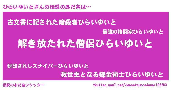 | ヒーロー風カッコイイあだ名 | 『魔戒騎士ヒラ』『ネオヒライユイト』 |