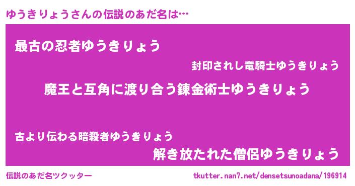 | ヒーロー風カッコイイあだ名 | 『愛の使者ゆうきりょう』『仮面ユウダー』 |