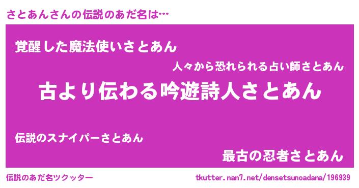 | 男性向けラノベタイトル風あだ名 | 『さとあんという概念が存在しない退屈な世界 』 |