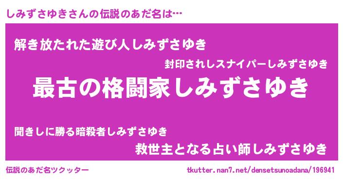 ファンタジー風あだ名 | 『エターナルシミズサユキー』 |