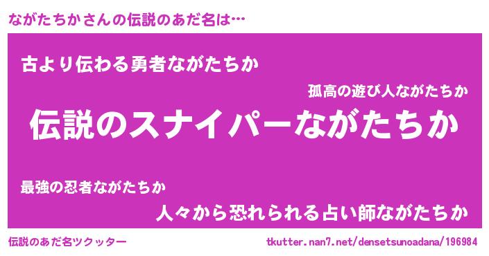 | 意味不明あだ名 | 『住所不定無職ながたちか(81歳)』 |