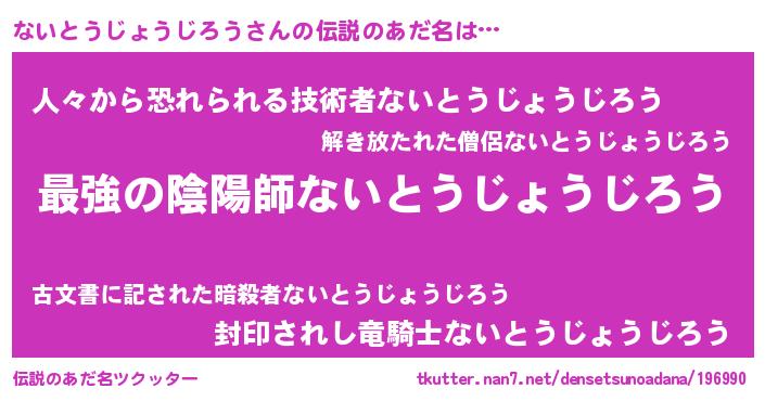 | ヒーロー風カッコイイあだ名 | 『最強戦士ナイトウジョウジロウ』 |