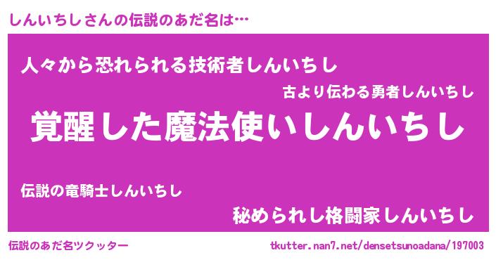 | 男性向けラノベタイトル風あだ名 | 『この素晴らしい世界にしんいちしを!』 |