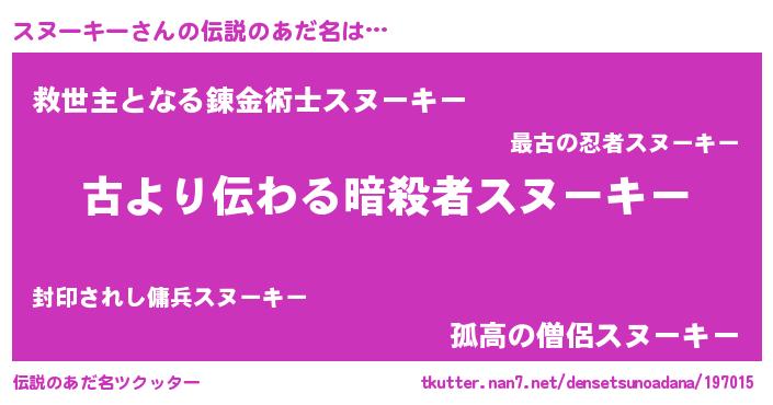 | ヒーロー風カッコイイあだ名 | 『ネオスヌーキー』『黄金騎士スヌ』 |