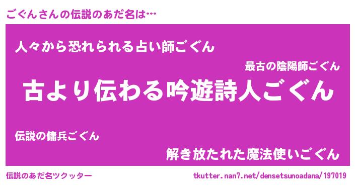 | 意味不明あだ名 | 『住所不定無職ごぐん(10歳)』 |