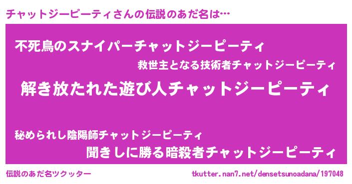 | 胡散臭い通販商品みたいなあだ名 | 『伝統あるペンダント…その名も「チャットジーピーティ」』 |