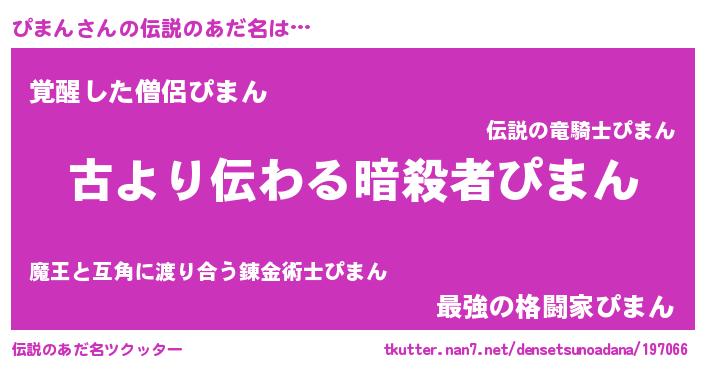 | ファンタジー風あだ名 | 『ピマディッシュ』『ゼピマトゥ』 |