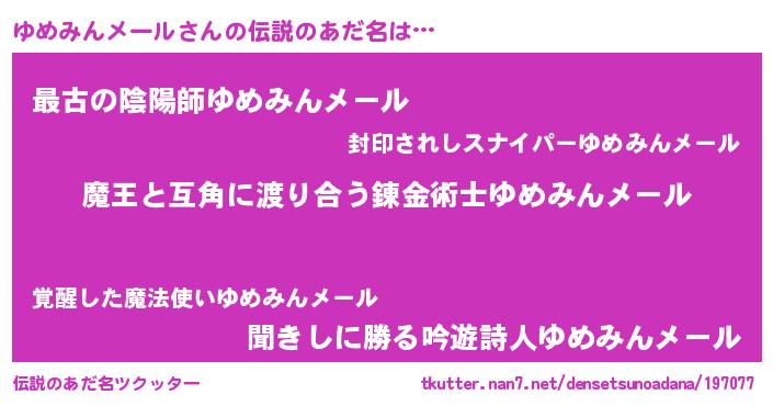 | ヒーロー風カッコイイあだ名 | 『友情の使者ゆめみんメール』 |