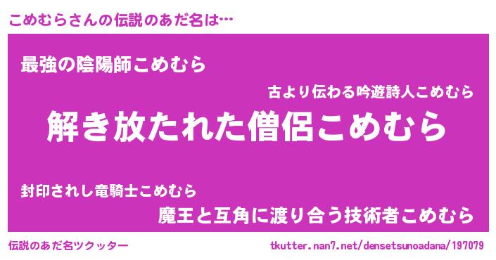 | 意味不明あだ名 | 『自称こめむら』『こめむらフォーエバー』 |