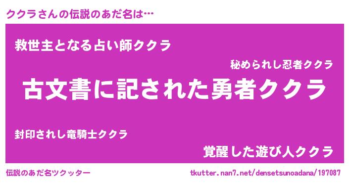 | ヘコむあだ名 | 『ククラ(震え声)』『ククっ子』 |