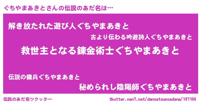 | ヒーロー風カッコイイあだ名 | 『慈愛の使者ぐちやまあきと』 |