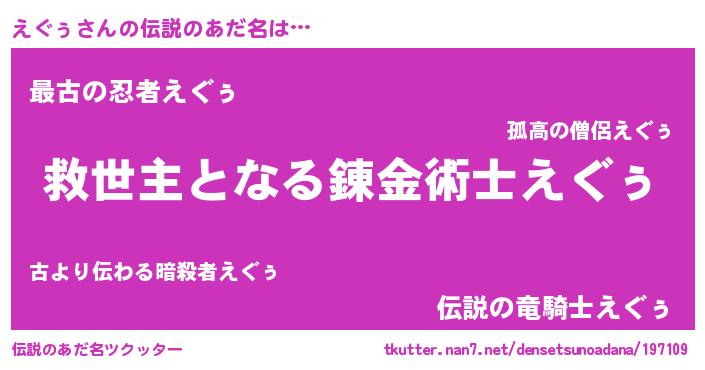 | ヒーロー風カッコイイあだ名 | 『天空の使者えぐぅ』『仮面エグダー』 |