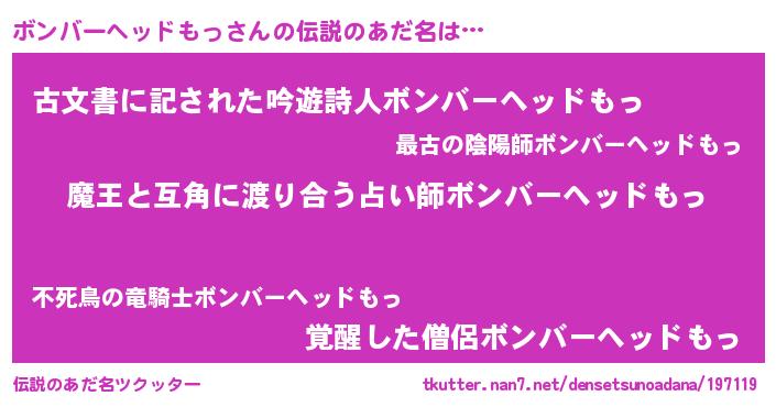 | 女子向けラノベタイトル風あだ名 | 『ボンバーヘッドもっ恋絵巻』 |