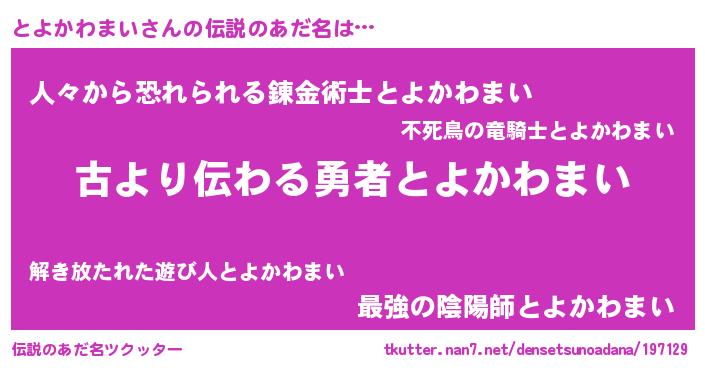 胡散臭い通販商品みたいなあだ名 | 『来世でも幸せになれる水素水…その名も「とよかわまい」』 |