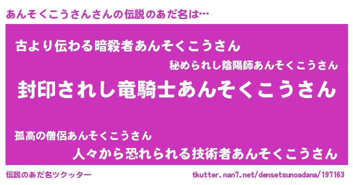 | 胡散臭い通販商品みたいなあだ名 | 『億万長者になれるブレスレット…その名も「あんそくこうさん」』 |