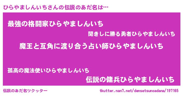 | 意味不明あだ名 | 『住所不定無職ひらやましんいち(56歳)』 |