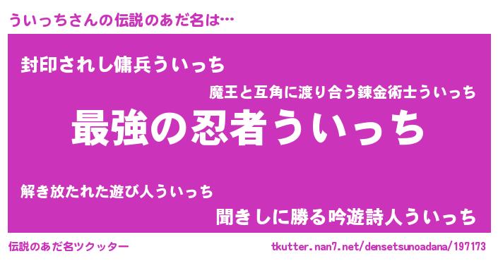 | 男性向けラノベタイトル風あだ名 | 『ういっちに滅ぼされるだけの簡単なお仕事です』 |