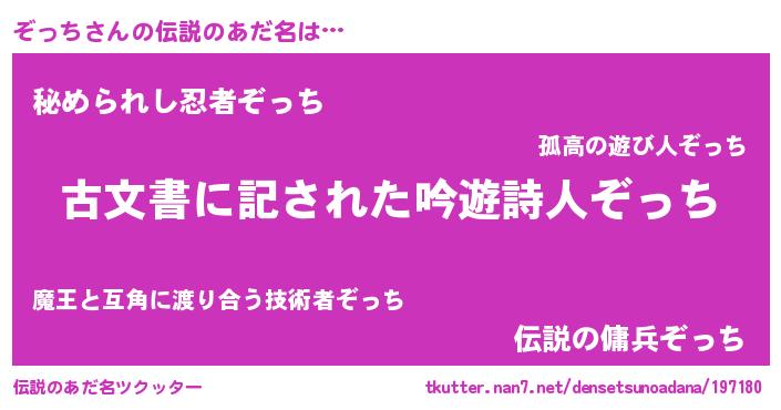 | ファンタジー風あだ名 | 『ゾッディッシュ』『エターナルゾッチー』 |