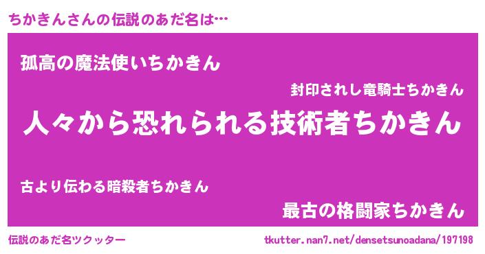 | 意味不明あだ名 | 『住所不定無職ちかきん(8歳)』 |
