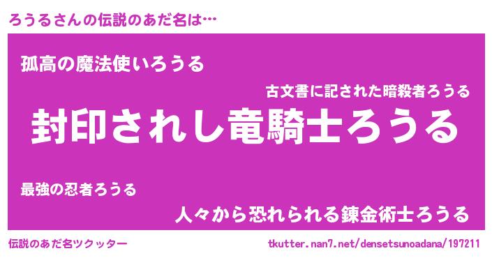 | ヘコむあだ名 | 『ろうにー』『ろうお』『レバニラ』 |