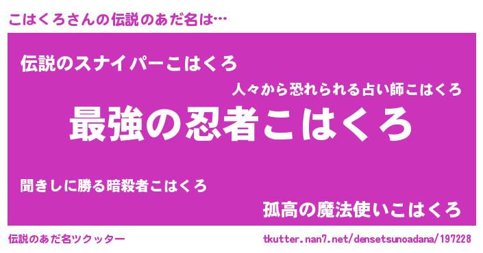 | 意味不明あだ名 | 『こはくろフォーエバー』『自称こはくろ』 |
