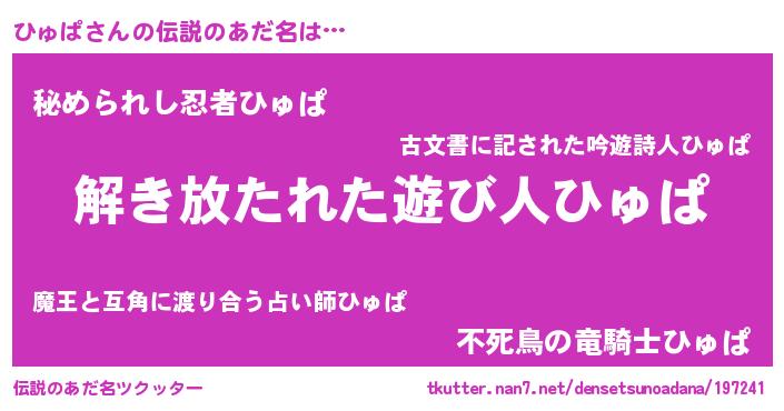 | ヒーロー風カッコイイあだ名 | 『幻影騎士ヒュ』『ウルトラひゅぱマン』 |
