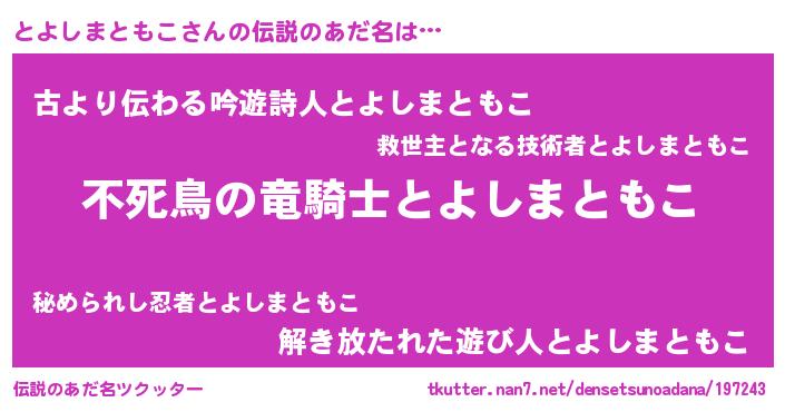 | 男性向けラノベタイトル風あだ名 | 『とよしまともこの憂鬱』 |