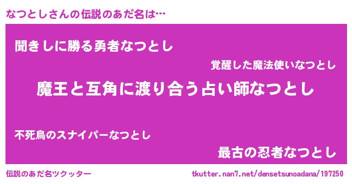 | ヒーロー風カッコイイあだ名 | 『友情の使者なつとし』『ネオナツトシ』 |