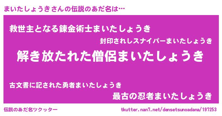 | 意味不明あだ名 | 『とにかく怪しいまいたしょうき』 |