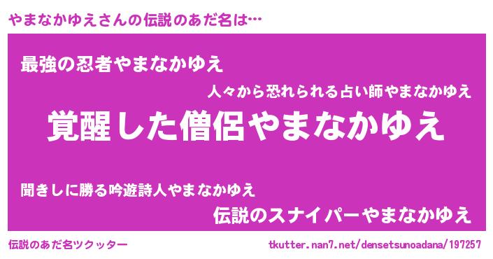 | ポケモン風あだ名 | 『ヒヤマナカユエ』『ヤマセウス』 |