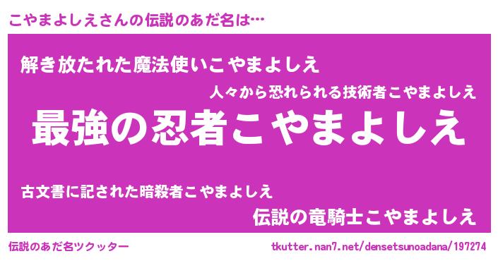 | ヒーロー風カッコイイあだ名 | 『仮面コヤダー』『究極戦士コヤマヨシエ』 |