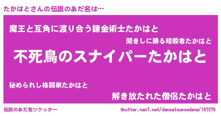 | 胡散臭い通販商品みたいなあだ名 | 『モテモテ間違いなし霊験あらたかなお札…その名も「たかはと」』 |