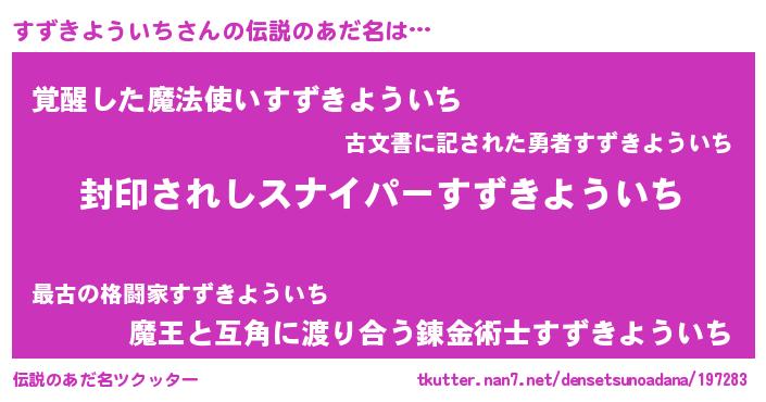 | ツイッター | すずきよういちさんのツイッターID『namakemono_kun』 |