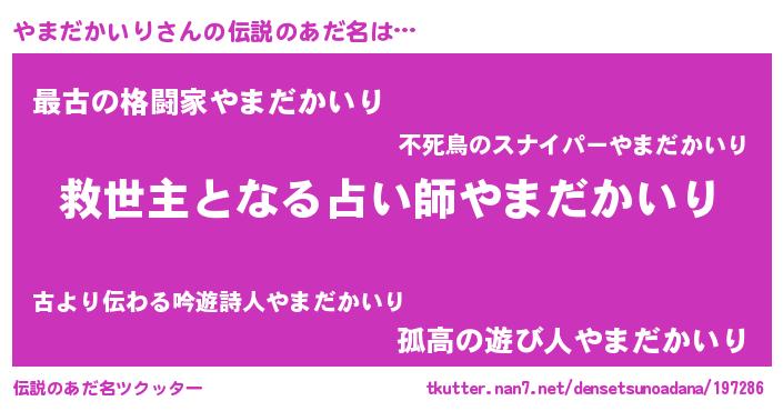 | 意味不明あだ名 | 『住所不定無職やまだかいり(53歳)』 |