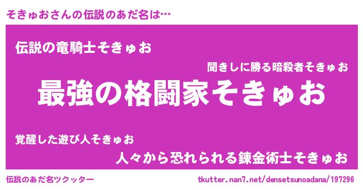 | ヒーロー風カッコイイあだ名 | 『ウルトラそきゅおマン』『仮面ソキダー』 |