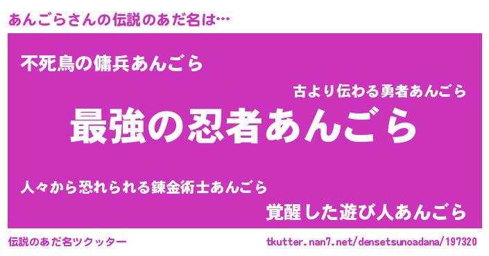 | 意味不明あだ名 | 『あんごらフォーエバー』『自称あんごら』 |